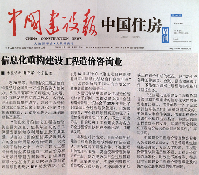 《中國建設報》對我公司召開的“建設項目投資管理與審計信息化戰略合作聯盟會議”進行報道