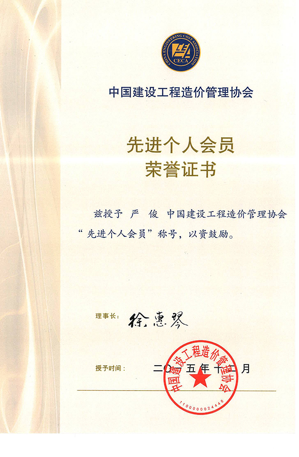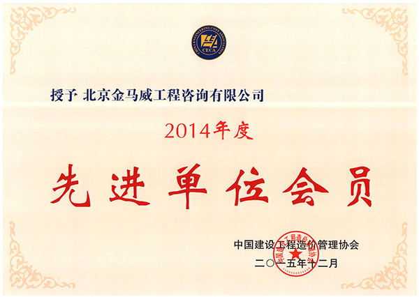 公司榮獲中國建設工程造價管理協會“2014年度先進單位會員”稱號,湖北分公司經理嚴俊榮獲“先進個人會員”稱號。